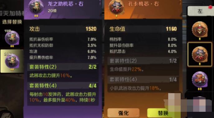 缺防御力和生命值的话推荐搭配孔卡机芯,提供更高格挡和抗暴击,加上额外生命值提升。