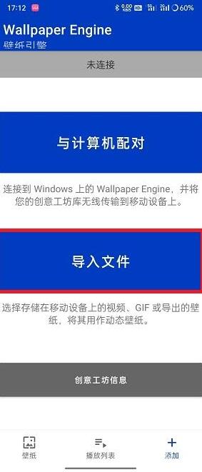 3、接着我们点击导入文件,打开下载的麻匪壁纸在壁纸软件中打开设置。