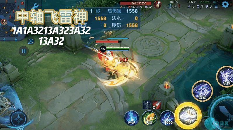 依次重复以上操作,只要明白读条没了就需要使用一技能或者二技能去刷新,再用三技能使本体和分身同时命中一个目标即可。