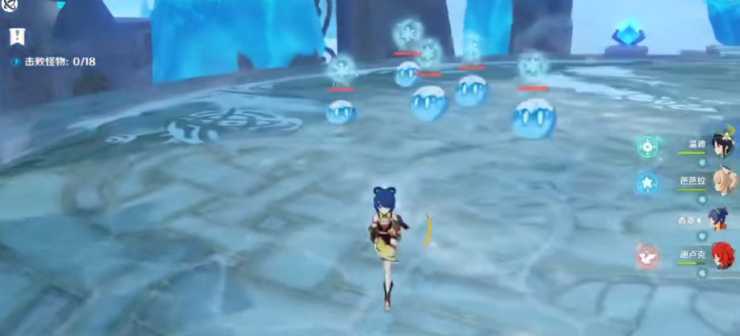 而冰封废渊一中就会刷先刷出5个史莱姆。玩家可以提前拿香菱攒个大,然后当史莱姆比较聚集的时候,直接释放元素爆发,以及锅巴,就可以2秒内击杀4个敌人。
