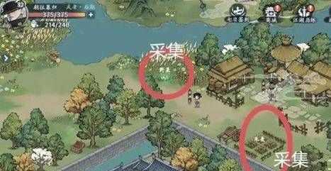 4、去城外后我们会在河边找到一个藏宝图,边上有两个采集任务。