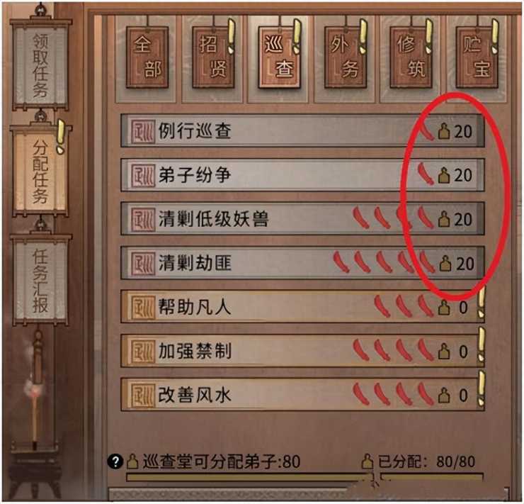 关于分配任务,首先要知道宗门分有“记名弟子”+“门内弟子”(我把外门、内门、真传、长老统称为门内弟子好了),记名弟子是游戏里看不到的npc,只是一个数值,而玩家要发展宗门,只需要关注记名弟子即可,门内弟子只是宗门战的工具人