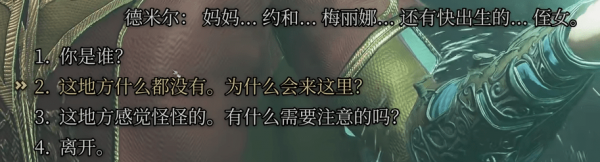 3、战斗结束后也可以选择对腐烂泥潭的德莱尔使用死者交谈,我们会得到一个关于梅丽娜的信息。