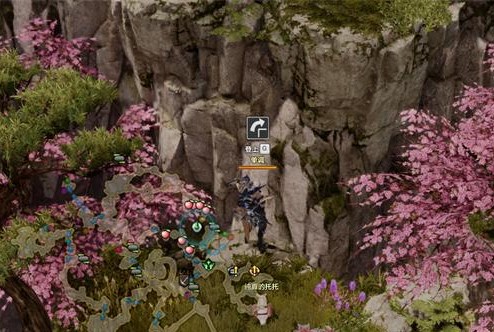 来到活动岛世外桃源,如下图,在交换商人处换取桃花果汁,然后从红箭头处进入隐藏地点走到两颗桃树下喝下桃花果汁就可以交互进入秘密空间了,在秘密空间中走到底交互龙骨便可以继续完成任务,后续跟着任务指引走就好,该任务奖励不多,可以先不做;
