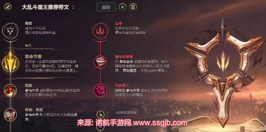 符文解析:蛮王的伤害已经足够强大了,所以我们需要提升的是他的攻击频率。致命节奏能够很好地弥补这一不足,而增加的攻击距离也使得蛮王更容易追击敌人。