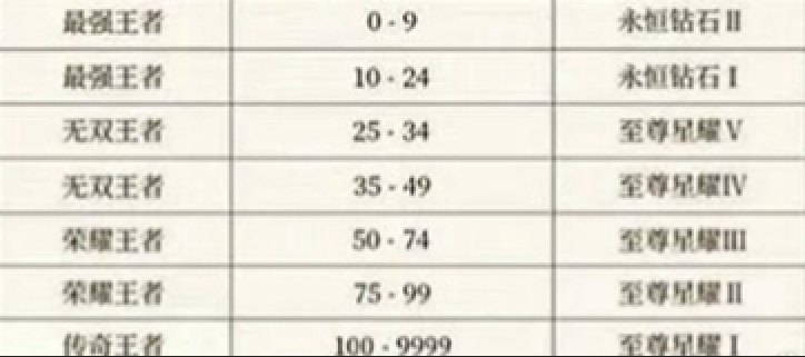1、传奇王者100-9999→至尊星耀Ⅰ