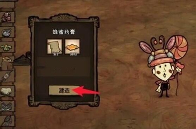 2、涂回血药膏。蜘蛛腺体+灰烬+圆石头=回血药。蜂蜜+莎草纸=蜂蜜药膏,也能使用。