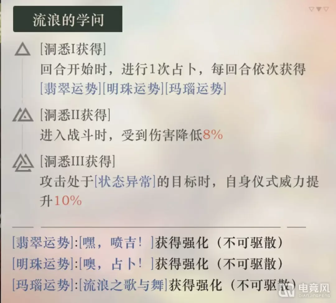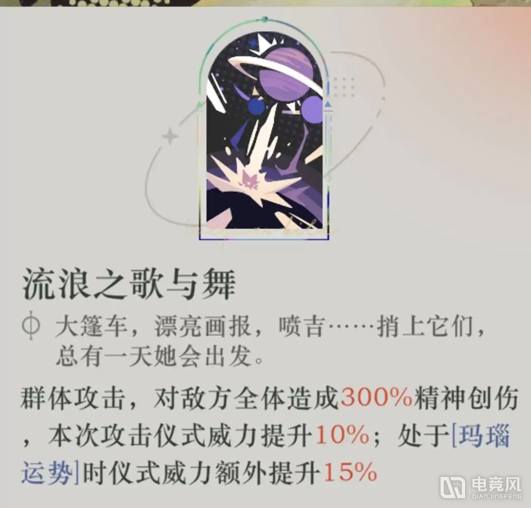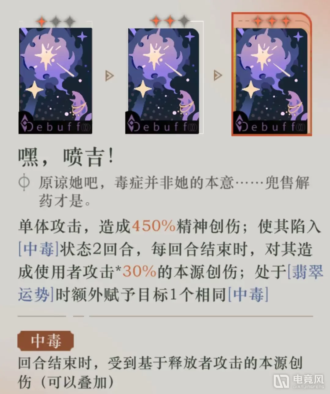 神秘术二,“噢,占卜!”触发传承一后单体附加明昧效果,明昧功能性极强,但是传承一的机制就决定了她并不具备暴击拐的泛用性,目前最适配的还是洁西卡的毒体系。