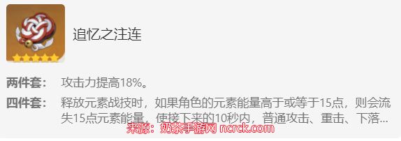 2、追忆之注连:虽然追忆的两件套对胡桃来说作用并不算很大,但四件套效果重击的50%加成对胡桃来说也是相当可观的,在中后期做为胡桃的过渡圣遗物来使用,也是可以上深渊12层打一打对单boss的。但是要配合钟离使用。