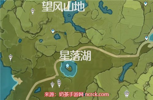 2、在【望风山地】,山顶有一个蒲公英刷新点,山脚也有一个刷新点,而附近的【星落湖】也有一个蒲公英刷新点。