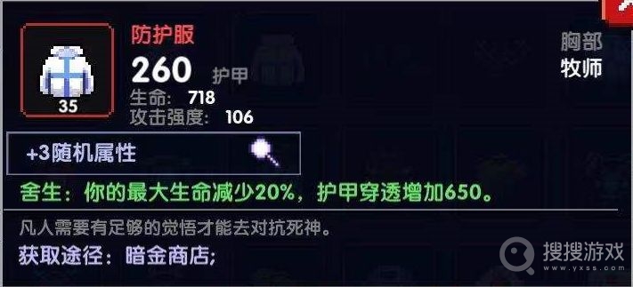 防护服主要用来堆穿透,适合武器没洗好的人群过渡用,因为雷牧三把武器都能洗穿透,最终毕业肯定是不缺穿透的,所以防护服不建议作为毕业防具。