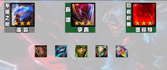 潘森,李青,墨菲特:狂徒、龙牙、反甲、石像鬼板甲、救赎等。